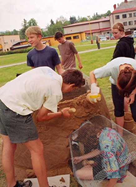 Tvorba umělecké pece při příležitosti oslav tvorby Jiřího Šlitra. Jednalo se o rozsáhlý projekt, na kterém jsem týden pracovala s 12 studenty Jílemnických škol. Přetváření 2 tun hlíny v uměleckou pec začalo 31.5.2004 a skončilo o týden později.